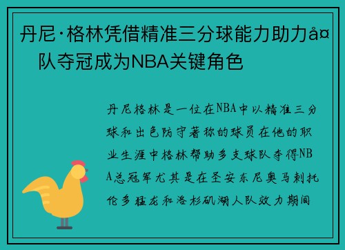 丹尼·格林凭借精准三分球能力助力多队夺冠成为NBA关键角色